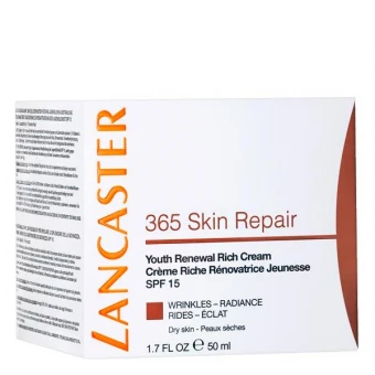 An 365 Tagen im Jahr muss sich Ihre Haut kontinuierlich an wechselnde Umweltbedingungen und Lebensstile anpassen, welche den Hautalterungsprozess beschleunigen können. Die 365 Skin Repair Reichhaltige Tagescreme mit Sonnenschutzfaktor 15 von Lancaster unterstützt den Schutz und die Reparatur der Haut – Tag für Tag. Die feuchtigkeitsspendende, reichhaltige Creme zielt sowohl auf biologische als auch umweltbedingte Ursachen der Hautalterung ab. Ideal, wenn Sie eine Hautpflege-Lösung gegen externe Faktoren wie UV-Strahlen, Verschmutzung, Stress sowie Schlafmangel suchen. Dank der reichhaltigen und angenehmen Textur ist die Creme speziell für trockene und sensible Haut geeignet und hinterlässt ein samtig weiches Hautgefühl.
